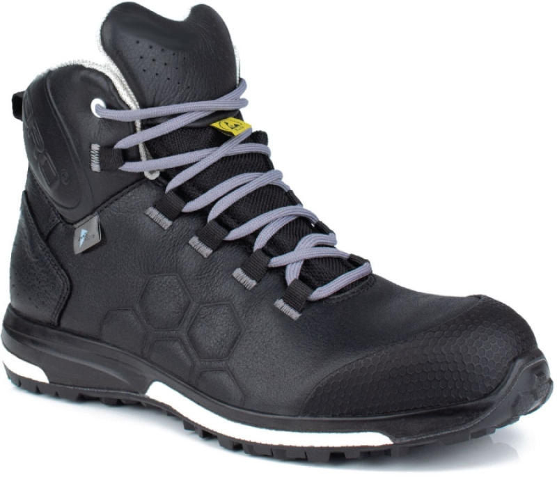 CHAUSSURE DE SECURITE POUR HOMME COMME POUR FEMME, TOUT TERRAIN EXTREME HAUT BOUT RECOUVERT, METAL FREE, ESD, MEMBRANE SYMPATEX.TIGE: cuir fleur lisse noir, hydrofuge.