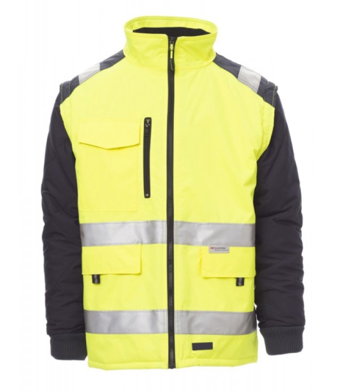 BLOUSON MATELASSE 2 EN 1 UNISEXE HAUTE VISIBILITE FROID NEGATIF FLASHVISION. 100% POLYESTER, 190 G/M². EN ISO 13688, EN ISO 471 CL2. TS À 5XL - JAUNE/MARINE ref.BL21FLASHJM