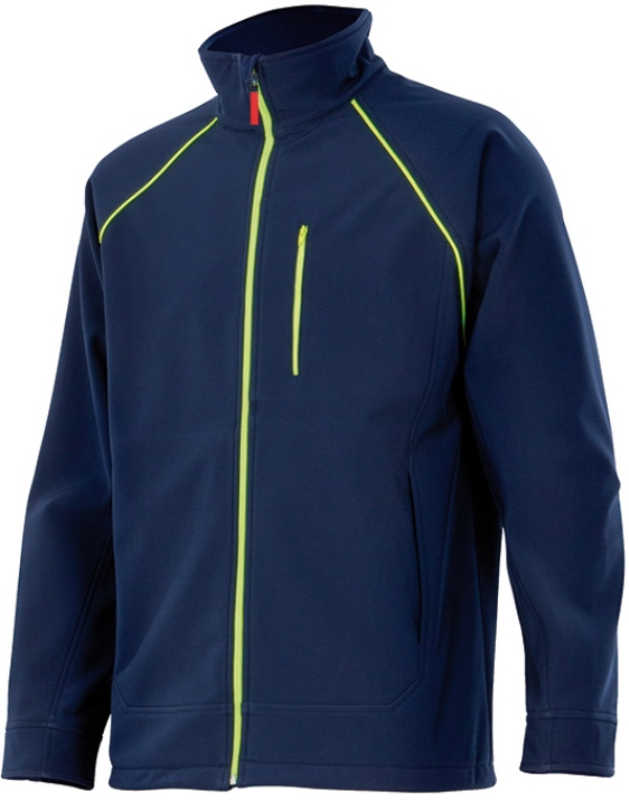 BLOUSON SOFT SHELL UNISEXE COMBI-FLUO. 94% POLYESTER / 6% ELASTHANNE, 320 G/M². TS A 3XL - MARINE/JAUNE FLUO ref.BL6001MRJF