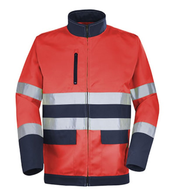 BLOUSON DE TRAVAIL HAUTE VISIBILITE M-LINE. POLYESTER / COTON. EN ISO 13688, EN ISO 20471 CL2. T36/38 À 60/62 - ROUGE/MARINE ref.BL9226RGMR