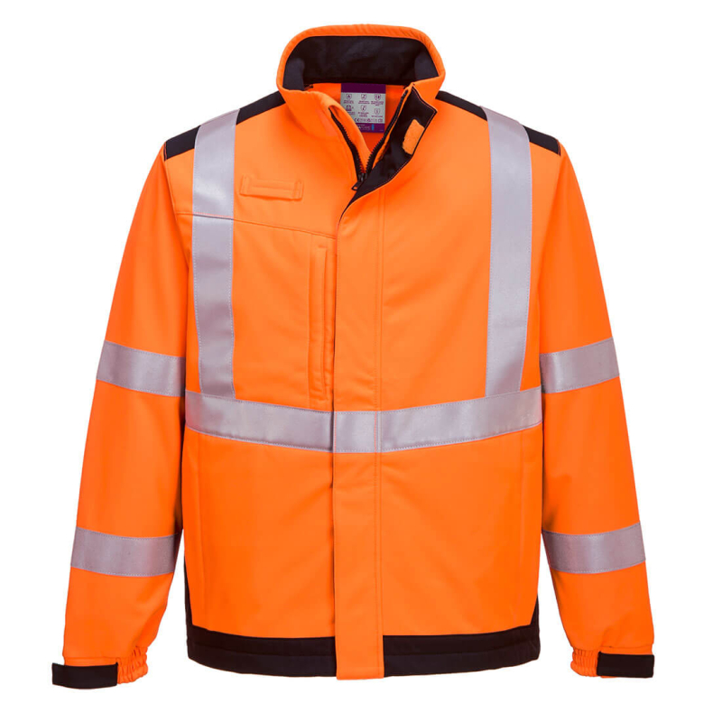 BLOUSON SOFTSHELL UNISEXE FR MULTIRISQUES HAUTE VISIBILITE ATEX ARC ELECTRIQUE. TAILLE S A 4XL - ORANGE/MARINE ref.BLELECOM