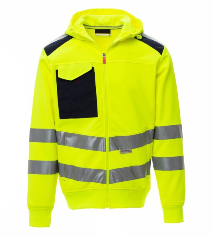 BLOUSON POLAIRE A CAPUCHE UNISEXE HAUTE VISIBILITE FLASHVISION. 100% POLYESTER, 300 G/M². EN ISO 13688, EN ISO 471 CL2. TS À 5XL - JAUNE/MARINE ref.BLPCFLASHJM