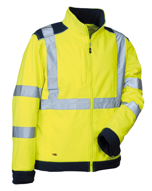 BLOUSON HAUTE VISIBILITE EXTREME CONFORT SOFTSHELL RESPIRANT/DEPERLANT. EN ISO 13688, EN ISO 20471 CL 3. TS À 4XL - JAUNE/MARINE ref.BLSOFT296JM