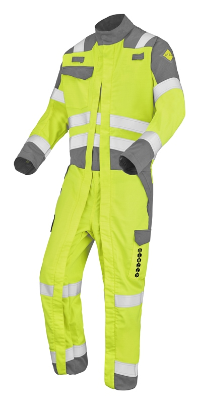 COMBINAISON DE TRAVAIL 2 ZIP MULTIRISQUES HAUTE VISIBILITE ATEX POCHES GENOUX 260. TAILLE 36/38 A 60/62 - JAUNE/GRIS ref.CEP29473JGR