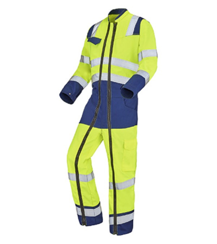 COMBINAISON DE TRAVAIL 2 ZIP HAUTE VISIBILITE V-LINE. COTON / POLYESTER. EN ISO 13688, EN ISO 20471 CL3. T36/38 À 60/62 - JAUNE/MARINE ref.CEP9482JMR