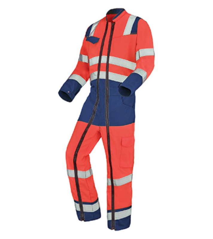 COMBINAISON DE TRAVAIL 2 ZIP HAUTE VISIBILITE V-LINE. COTON / POLYESTER. EN ISO 13688, EN ISO 20471 CL3. T36/38 À 60/62 - ROUGE/MARINE ref.CEP9482RGMR