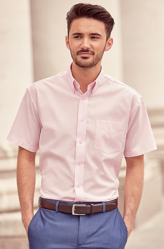 CHEMISE HOMME MANCHES COURTES. COTON OXFORD / POLYESTER. TS A 6XL - ROSE ref.CHEM933ROS