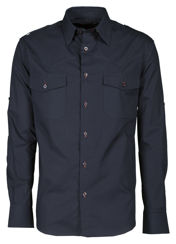 CHEMISE VIGILE UNISEXE EPAULETTES MANCHES LONGUES. 100% COTON POPELINE, 130 G/M². TS A 3XL - MARINE ref.CHEMTROMR