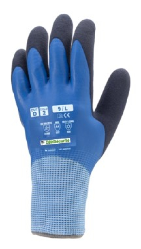 GANT FROID Niveau 2, ANTI-COUPURE ISO (cut) D, DOUBLE INDUCTION LATEX, ETANCHE NIVEAU 1, HPPE, Latex, Doublure en bouclette acrylique, Jauge 10. Taille XS (8) à XXL (12) ref.COLDCUT01