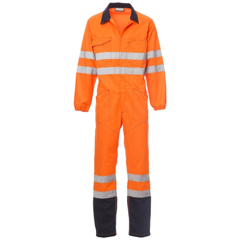 COMBINAISON DE TRAVAIL 1 ZIP UNISEXE HAUTE VISIBILITE FLASHVISION. COTON / POLYESTER, 250 G/M². EN ISO 13688, EN ISO 471 CL2. TS À 5XL - ORANGE/MARINE ref.COMFLASHOM