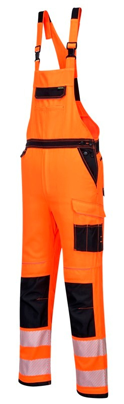 COTTE A BRETELLES DE TRAVAIL HAUTE VISIBILITE FLEXIVISION BICOLORE POCHES GENOUX. POLYESTER / COTON, 300 G/M². EN ISO 20471 CL2. TS À 3XL - ORANGE/NOIR ref.COT344ONR