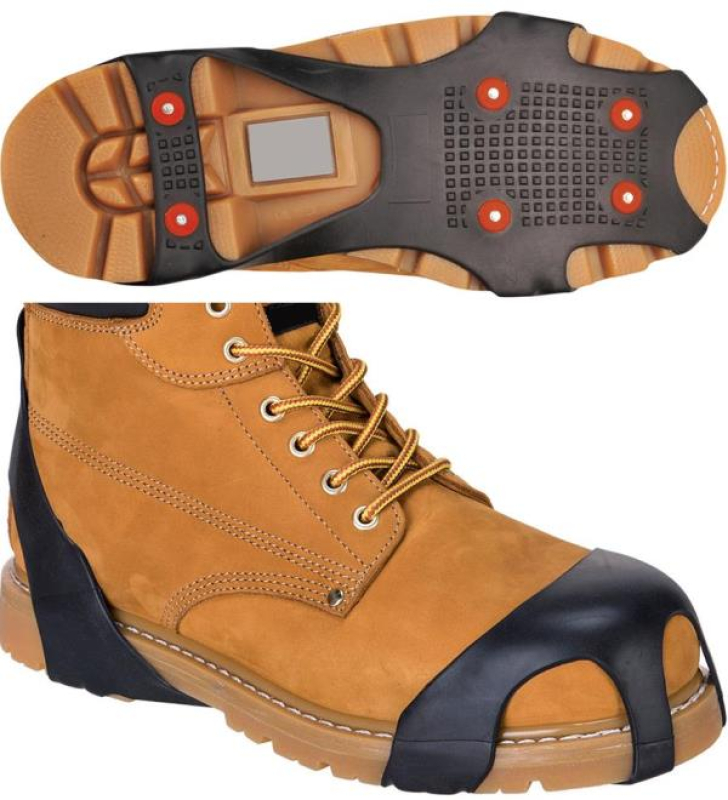 PAIRE DE SEMELLES ANTI-DERAPANTES POUR HOMME ADAPTABLES SUR TOUS TYPES DE CHAUSSURES ET BOTTES. Semelles de caoutchouc extensible munie de pointes acier. Destinées aux environnements à surfaces trés glissantes (glace, neige,...). Poids : 170 gr la paire.Pour pointures allant du 39 au 43.
