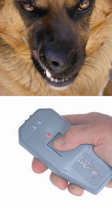 BOITIER DAZER 2 A ULTRASON REPOUSSE LES CHIENS AGRESSIFS. Par une simple pression sur une touche, le DAZER émet une tonalité à haute fréquence (25000 Hz) imperceptible aux humains mais qui est perçue par l’oreille des chiens comme un son repoussant. L’effet dissuasif est optimal lorsque le DAZER 2 est utilisé à une distance de 2 à 5 m du chien. Il évite ainsi l’ensemble des cas d’agressions chaque année qui incombe à bon nombre de victimes marquées par l’agressivité de chiens incontrôlables. Ce dispositif ne procure aucune séquelle sur les chiens. Il neutralise l’agressivité et fait fuir l’animal. Il reprend le principe du sifflet à ultrason des dresseurs sans la contrainte de soufflet à l’intérieur d’un dispositif. Ce boîtier à ultrason est actuellement utilisé par l’ensemble des personnels de services et des particuliers dans le monde entier (services postaux, services de télécommunication, services de fourrière canine, vétérinaires, releveurs de compteur, joggers,…). Poids: 50 gr. Longueur: 109 mm. Epaisseur: 30 mm. Fourni avec pile et clip de port à la ceinture.