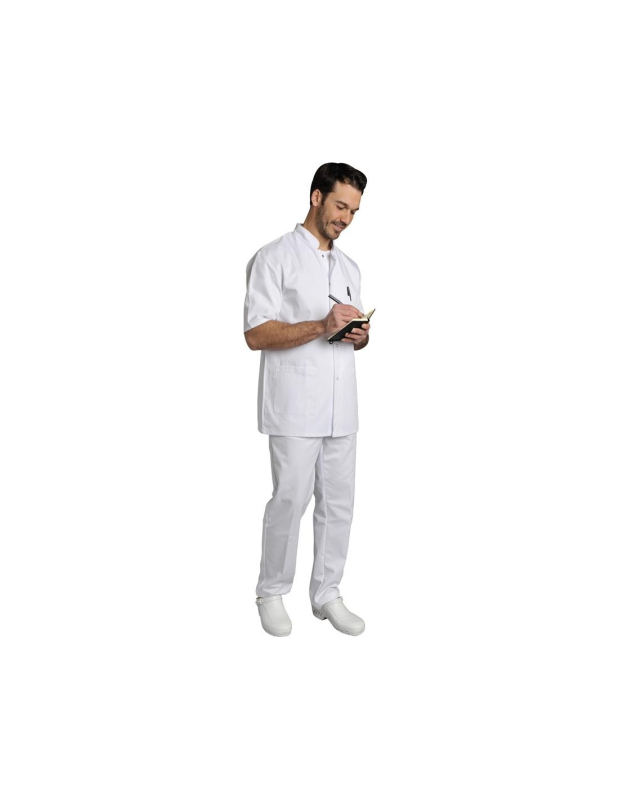 TUNIQUE DENIS. PRESSIONS MANCHES COURTES. UNI POLYESTER / COTON. T0 (36/38) à 6 (60/62) - BLANC ref.DENISBLC