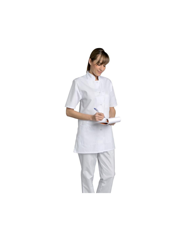 TUNIQUE DENISE. PRESSIONS MANCHES COURTES. UNI POLYESTER / COTON. T0 (36/38) à 6 (60/62) - BLANC ref.DENISEBLC