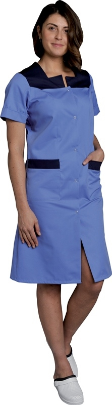BLOUSE DIANE. PRESSIONS MANCHES COURTES. UNI POLYESTER / COTON. T0 (36/38) à 6 (60/62) - BLEU METRO ref.DIANEBM
