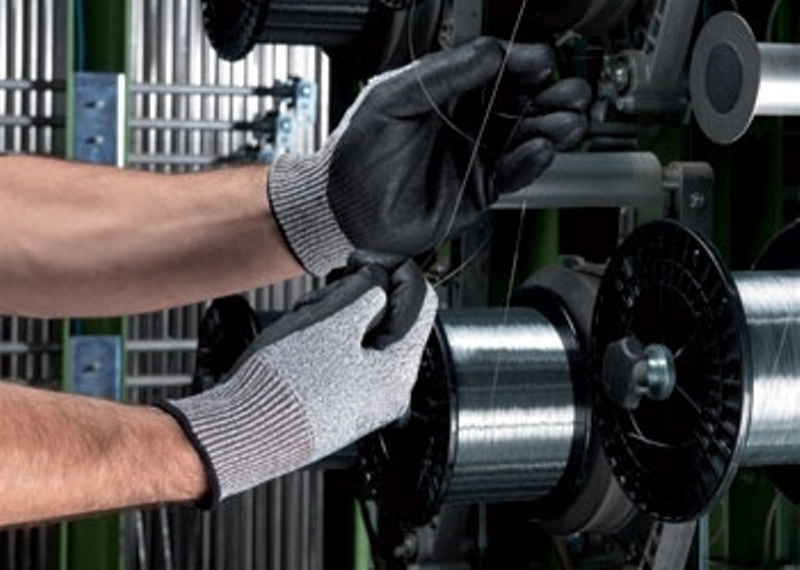 GANT ANTI-COUPURE NIVEAU 5, PU GRIP. Gant HDPE/Nylon/Lycra gris tricoté une pièce, jauge 13, enduction grip polyuréthane noir sur la paume et les doigts. Poignet élastique. Taille 8. Activités : Manipulation d’objets tranchants et piquants - Manipulation fine en milieu sec - Industrie - Fabrication de tôles - Industrie du verre - Atelier mécanique - Assemblage automobile - Mécanique de précision. Avantages : Gant ergonomique et d’une très bonne résistance mécanique. Anti-coupure niveau 5. Adapté pour les contacts secs répétés et prolongés.