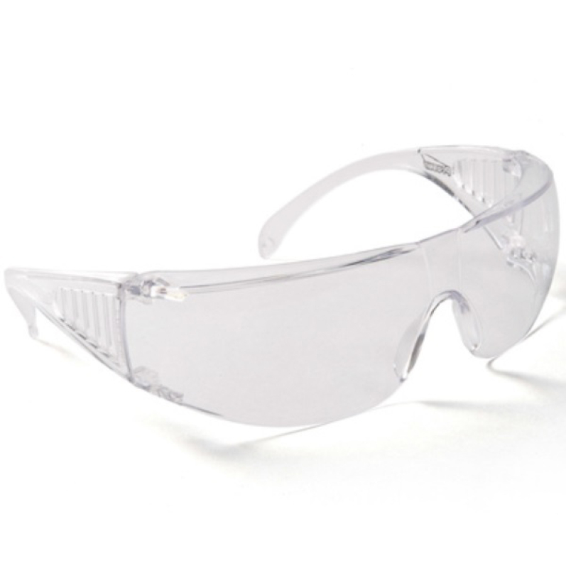LUNETTES VISITEUR. Lunette à large branches. Large champ de vision. Ecran et branches en Polycarbonate incolore (épaisseur 2 mm). CE EN166 et EN170 (2C-1.2 1FT). Poids 27 g.
