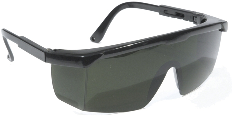 LUNETTES SOUDEUR AJUSTABLES. Monture et branches en nylon noir. Branches réglables en longueur. Oculaire avec protections latérales en polycarbonate teinte 3 (épaisseur 2,4 mm). CE EN166 (1FT), EN175 et EN169. Poids 34 g.