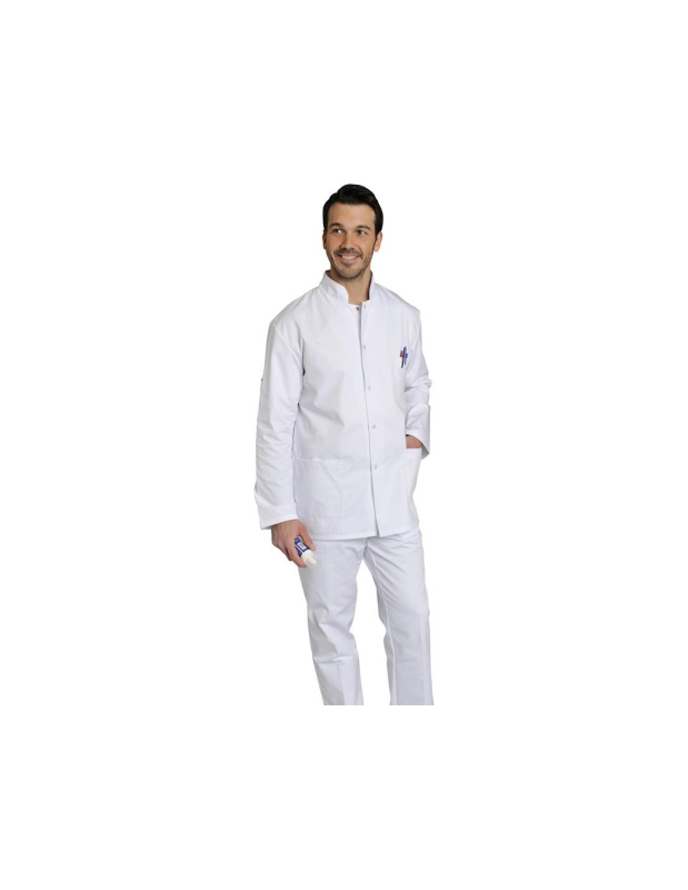 TUNIQUE FABIEN. PRESSIONS MANCHES REGLABLES. UNI POLYESTER / COTON. T0 (36/38) à 6 (60/62) - BLANC ref.FABIENBLC