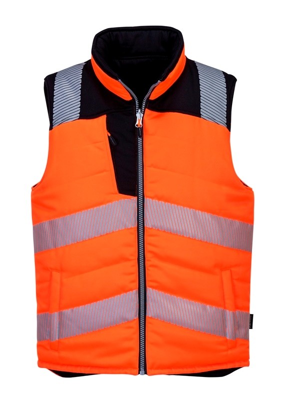 GILET DOUDOUNE REVERSIBLE 2 EN 1 HAUTE VISIBILITE FLEXIVISION BICOLORE. POLYESTER / COTON / INSULATEX 545 G/M². EN ISO 20471 CL2. TS À 3XL - ORANGE/NOIR ref.GIL374ONR