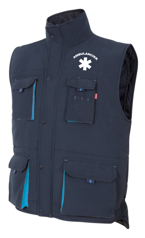 GILET UNISEXE COMBI-DUO MATELASSE MULTIPOCHES AMBULANCIER. 100% POLYESTER, 400 G/M². TS A 3XL - MARINE/BLEU CIEL ref.GILA5902MR