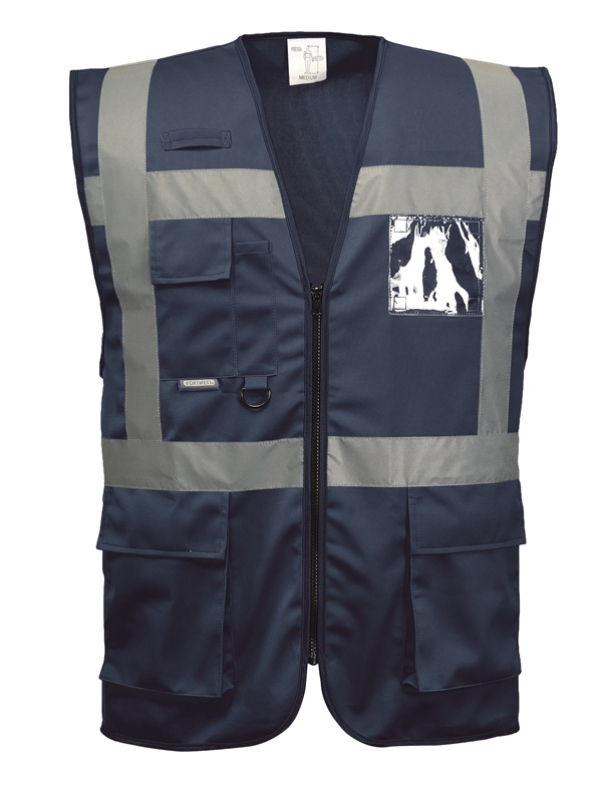GILET VIGILE UNISEXE MULTIPOCHES SECURITE REFLECT. 100% POLYESTER, 125 G/M² - TS A 3XL - MARINE ref.GILF476MR