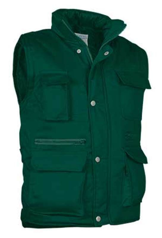 GILET UNISEXE MATELASSE MULTIPOCHES REPORTER. POLYESTE / COTON, 220 G/M² - TS A XXL - VERT BOUTEILLE ref.GILREPVB