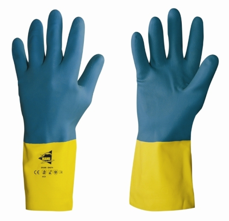 GANT PROPRETE LATEX/NEOPRENE CAT 2, SOLVANTS ET RESINES. BICOLORE FLOQUE COTON, PAUME GAUFREE, LONG 32 CM, T7 A 10 ref.HP300
