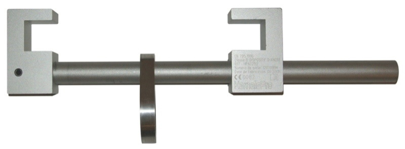 HARNAISPRO ANCRAGE IPN MOBILE REGLABLE. Point d’ancrage aluminium transportable pour IPN de 95 à 400 mm. Léger avec un poids de seulement 1,37 kg, il permet par simple pression latérale de régler la barre d’ancrage soit sur la partie supérieure, soit sur la partie inférieure de la poutre. Utilisation par 1 personne maximum. Dimensions : 440 x 100 x 45 mm. EN 795B.