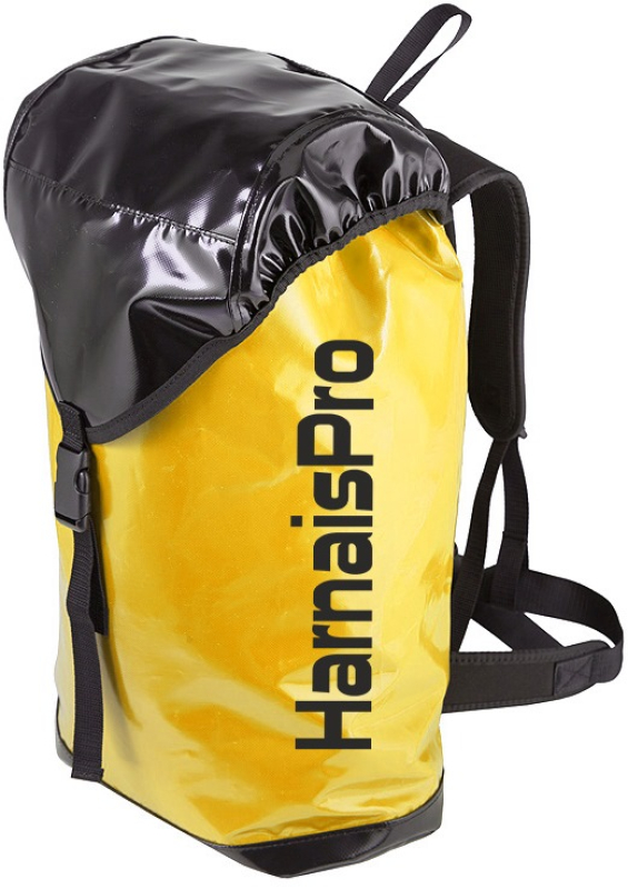 HARNAISPRO CLIMBER BAG 45. SAC EPI 45 L GRAND CONFORT. Sac à dos EPI PVC renforcé étanche jaune. Large ouverture avec un cordon de serrage et bloqueur. Bretelles et ceinture réglables matelassées. Ceinture fermée par une boucle. Rembourrage intérieur du dos. Rabat supérieur noir fermé par une boucle. Anse de hissage. 2 Œillets d’évacuation en fond de sac. Dimension : 360 x 220 + 630 mm. Poids : 1180 g.