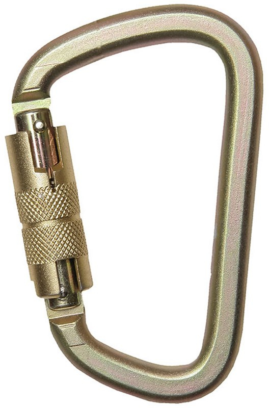 HARNAISPRO MOUSQUETON ACIER EN D 1/4 DE TOUR DOUBLE ACTION. Mousqueton acier forme D. Facilité de connexion et haute résistance. Fermeture et verrouillage automatique 1/4 de tour TWIST LOCK. Résistance ? 20 kN. Ouverture 25 mm. Poids : 200 g. EN 362.