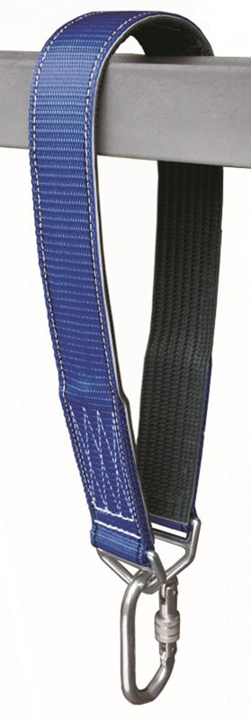 HARNAISPRO SANGLE D’AMARRAGE TEMPORAIRE. Sangle d'amarrage très haute résistance. Sangle en polyamide / polyester, renfort interne en caoutchouc, longueur 2 mètres. Extrémités en Dé acier. Fournie avec 1 mousqueton acier, doigt automatique, fermeture à virole à vis. Résistance ? 30 kN. Poids : 940 g. EN 795B. Utilisation recommandée pour la réalisation de points d’ancrages lors de l’utilisation de la ligne de vie temporaire HPAE32020 (sécurisation de 3 personnes simultanément).