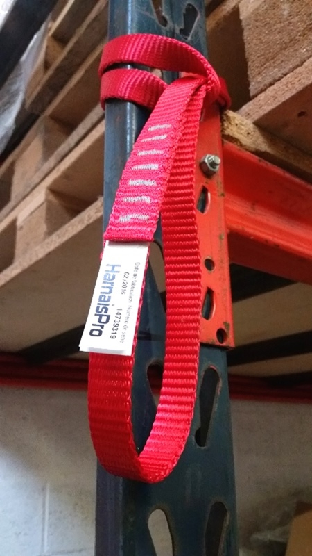 HARNAISPRO ANNEAU D’AMARRAGE EN SANGLE COUSUE ROUGE, LONGUEUR 0,60M. Dispositif d’ancrage en sangle polyester cousue formant un anneau. Cet ancrage mobile (EN795B) permet de créer un point d’ancrage léger, facile à transporter et à adapter sur tout support ayant une résistance à la charge d’au moins 10 kN. Dispositif permettant l’assujettissement (EN354) pour la retenue et le maintien au travail. Dispositif associable à un absorbeur d’énergie (EN355) pour stopper la chute en limitant la force de choc à 6 kN. Résistance ? 22 kN. Utilisation par une seule personne. EN 795B + EN 354.
