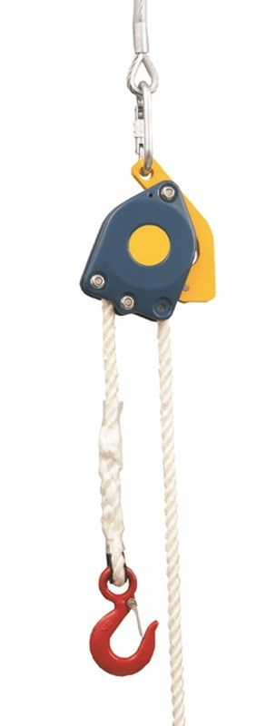 HARNAISPRO FRENO. POULIE FREIN MAX 100 KG. Système auto-stop. Permet le hissage d’objet en évitant la chute. Cordage polyamide toronné 3 brins diamètre 14 mm. Longueur de cordage : 30 m. Extrémité de cordage équipé d’un crochet à linguet DIN 689 en acier traité et peint, 410 g, ouverture 26 mm, charge de travail 1000 kg, charge de rupture 5000 kg. Charge de travail maximum du système de poulie / cordage : 100 kg. Dimensions : 190 x 55 x 150 mm. Poids : 2,2 kg.