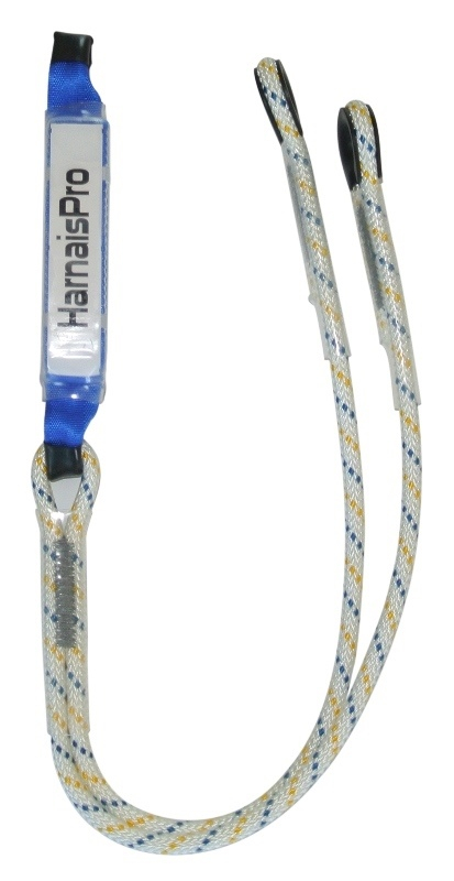 HARNAISPRO ABSORBER LIMITED-CY 100. Longe antichute corde Y avec absorbeur d’énergie intégré. Longueur de drisse (diamètre 10,5 mm) avec l’absorbeur à extension limitée: 1,00 m. Extrémités en boucles cousues et cossées. Poids : 372 g. EN 355. A compléter par des connecteurs suivant configuration souhaitée.