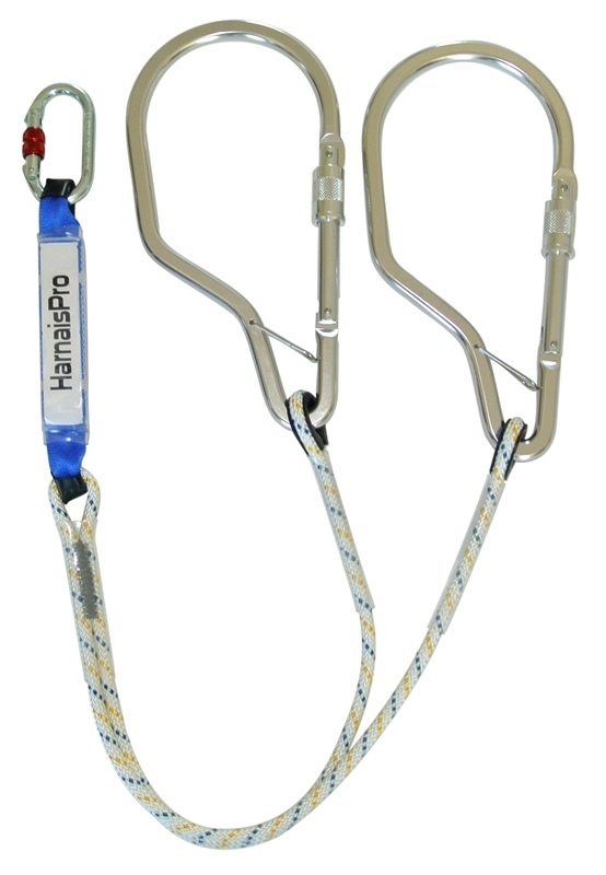 HARNAISPRO ABSORBER LIMITED-CY 100 AZ125. Longe antichute corde Y avec absorbeur d’énergie intégré pour évolution en unité de stockage. Longueur de drisse (diamètre 10,5 mm) avec l’absorbeur à extension limitée + connecteurs (OK KARAM + HPAZ125): 1,38 m. Extrémités en boucles cousues et cossées. Poids : 1520 g. EN 355.