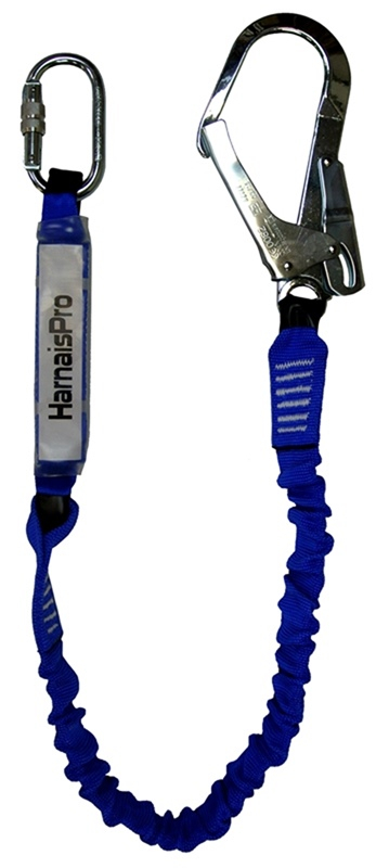 HARNAISPRO ABSORBER-I-EXT-MGO KARAM 150. Longe antichute extensible avec absorbeur d’énergie intégré. Sangle extensible pour une facilité d’utilisation incomparable. Longueur de sangle avec l’absorbeur + connecteurs (OK KARAM + MGO KARAM): au repos 1,10 m / sous tension: 1,50 m. Poids : 840 g. EN 355.