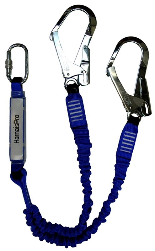 HARNAISPRO ABSORBER-Y-EXT-MGO KARAM 150. Longe antichute extensible Y avec absorbeur d’énergie pour évolution sur structure métallique. Sangle extensible pour une facilité d’utilisation incomparable. Longueur de sangle avec l’absorbeur + connecteurs (OK KARAM + MGO KARAM): au repos 1,10 m / sous tension: 1,50 m. Poids : 1520 g. EN 355.