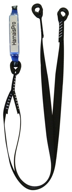 HARNAISPRO ABSORBER LIMITED-SY 150. Longe antichute sangle Y avec absorbeur d’énergie intégré. Longueur de sangle (largeur 30 mm) avec l’absorbeur à extension limitée: 1,50 m. Extrémités en boucles cousues et cossées. Poids : 420 g. EN 355. A compléter par des connecteurs suivant configuration souhaitée.