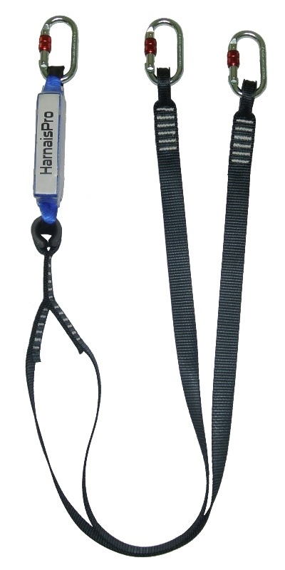 HARNAISPRO ABSORBER LIMITED-SY 150 OK KARAM. Longe antichute sangle Y avec absorbeur d’énergie intégré pour évolution sur structure métallique. Longueur de sangle (largeur 30 mm) avec l’absorbeur à extension limitée + connecteurs (OK KARAM): 1,60 m. Extrémités en boucles cousues et cossées. Poids : 940 g. EN 355.