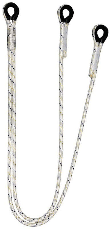 HARNAISPRO CONNECT-CY 150. Longe d’assujettissement Y en corde. Pour le maintien au travail, la retenue et le contre assurage. Longe en drisse polyamide, diamètre 10,5 mm avec boucle cossée à chaque extrémité. Longueur 1.50 m. EN 354.