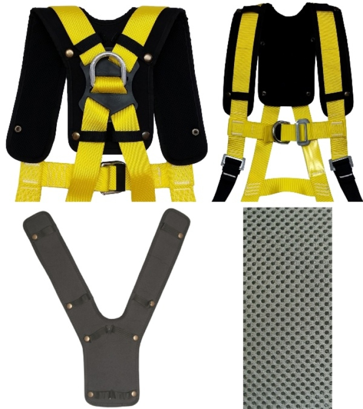 HARNAISPRO PAD. Dosseret de protection renforcé en mousse tri-dimensions (résistance, légèreté, confort et aération associés) adaptable rapidement sur les bretelles de harnais antichute par la simple mise en place de huit pattes de fixation équipées d’une pression. Permet d’acquérir un confort maximum lors du port du harnais antichute. Amélioration de l’ergonomie des harnais antichute classique. Répartition du poids des équipements. Enfilage du harnais simplifié.Poids: 120 g.