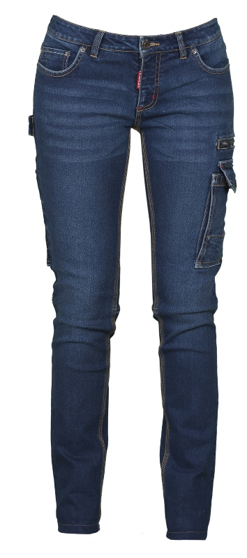 PANTALON JEAN FEMME MULTIPOCHES STRETCH TAILLE BASSE. COTON / POLYESTER / ELASTHANNE, 300 G/M². T34 À 40 - BLEU ref.JEANFWEST