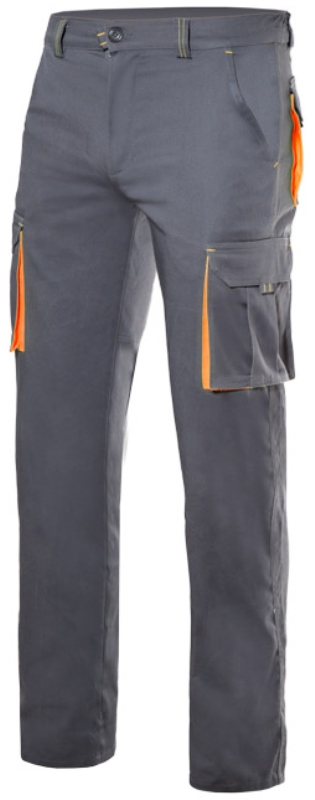 PANTALON STRETCH UNISEXE COMBI-FLUO. 16% POLYESTER / 46% COTON / 38% EMET, 240 G/M². T34 A 60 - GRIS/ORANGE FLUO ref.P3008SGROF