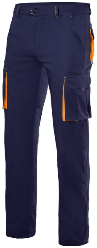 PANTALON STRETCH UNISEXE COMBI-FLUO. 16% POLYESTER / 46% COTON / 38% EMET, 240 G/M². T34 A 60 - MARINE/ORANGE FLUO ref.P3008SMROF