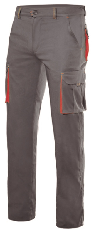 PANTALON STRETCH UNISEXE COMBI-DUO. 16% POLYESTER / 46% COTON / 38% EMET, 240 G/M². T34 A 60 - GRIS/ROUGE ref.P3024SGRRG