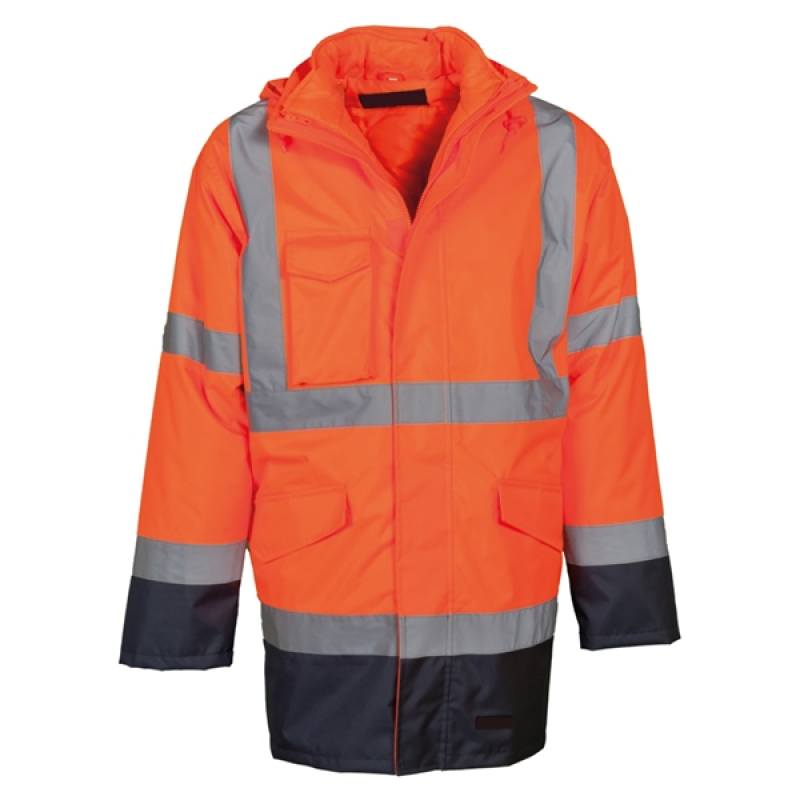 PARKA 4 EN 1 UNISEXE HAUTE VISIBILITE IMPER/RESPIRANT FLASHVISION. 100% POLYESTER, 180 G/M². EN ISO 13688, EN ISO 471 CL3. TS À 5XL - ORANGE/MARINE ref.P41FLASHOM