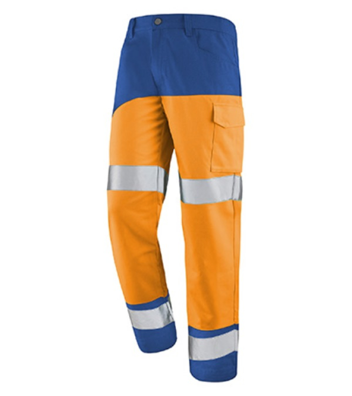 PANTALON DE TRAVAIL HAUTE VISIBILITE V-LINE. COTON / POLYESTER. EN ISO 13688, EN ISO 20471 CL2. T36/38 À 60/62 - ORANGE/BUGATTI ref.PAN9085OB