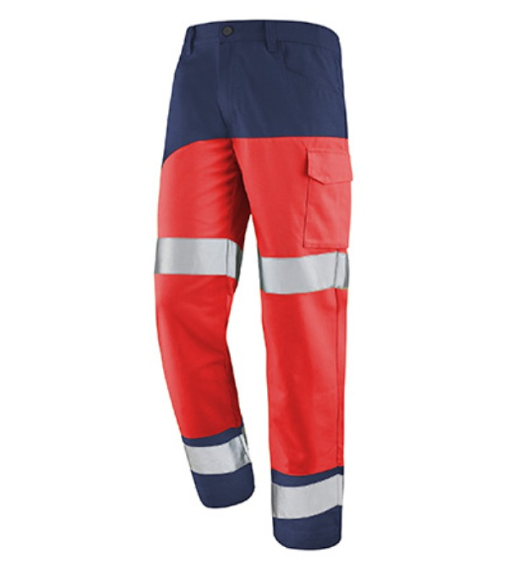 PANTALON DE TRAVAIL HAUTE VISIBILITE V-LINE. COTON / POLYESTER. EN ISO 13688, EN ISO 20471 CL2. T36/38 À 60/62 - ROUGE/MARINE ref.PAN9085RGMR